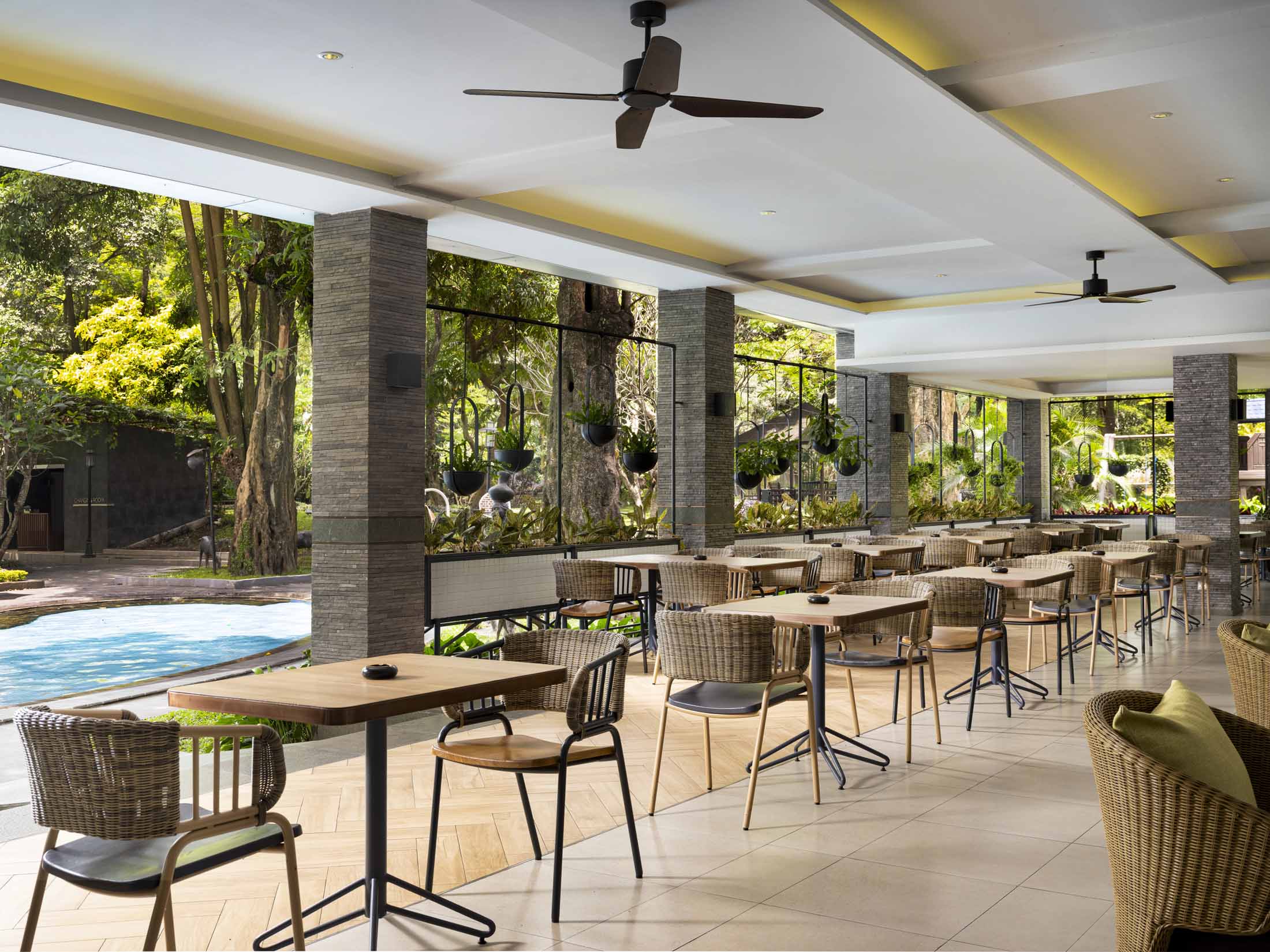 The SamaZana Restaurant, an all-day-dining venue, not only provides the best breakfast buffet spread in Indonesia, but also a wonderful journey of foods from around Asia through to the whole of the Mediterranean. This all-day restaurant features both indoor and outdoor seating overlooking the outdoor pool and Royal garden.