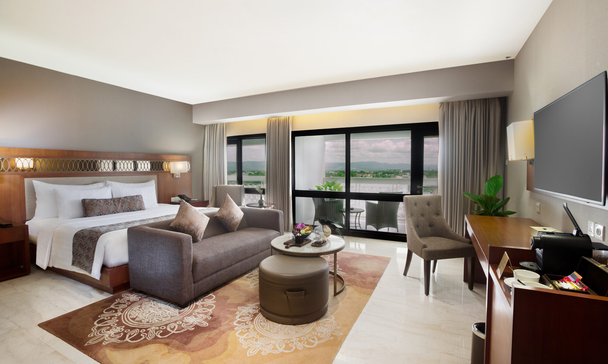 Guests also enjoy exclusive access to the luxurious Royal Club Lounge, adding an extra touch of privilege to the experience. The suite includes a complimentary minibar, plush bathrobes, high-speed wireless internet access, coffee and tea making facilities, ironing board, in-room hairdryer, hospitality LED TV, laptop-sized safe, and premium bedding with pillow-top mattresses—thoughtfully prepared to ensure a truly quintessential stay.